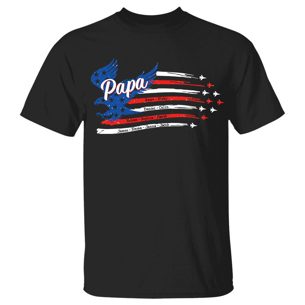 Papa with Grandkids Names American Air Force Flyover Personalized Shirt